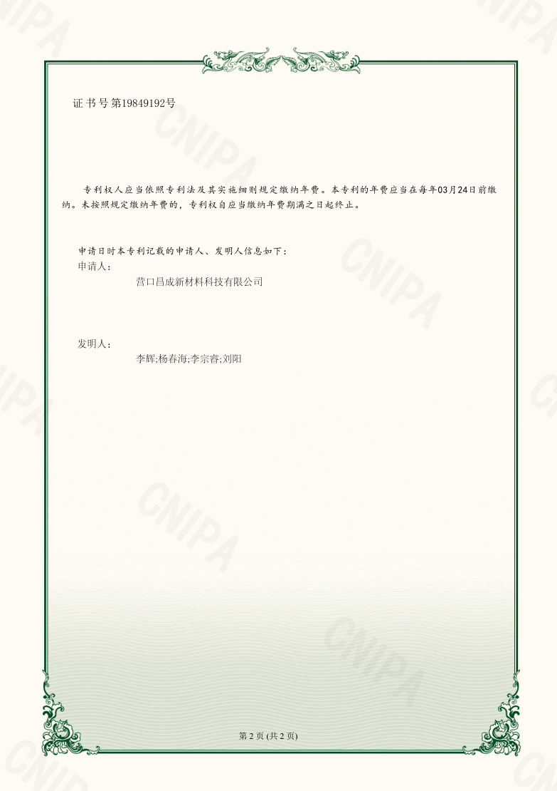營口昌成新材料科技有限公司 版權(quán)所有(C)2021?網(wǎng)絡(luò)支持?中國化工網(wǎng)?全球化工網(wǎng)?生意寶?網(wǎng)盛建站?著作權(quán)聲明  遼ICP備2021005949號